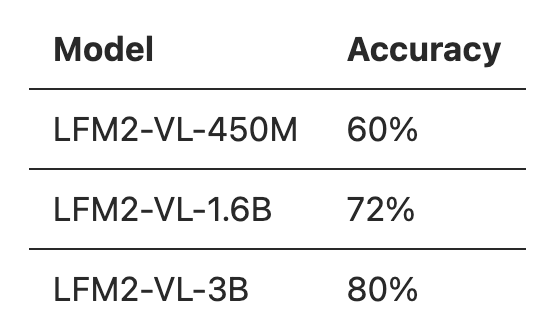 We will be using the LFM2-VL-450M and LFM2-VL-1.6B models, as well as the newly released LFM2-VL-3B model.